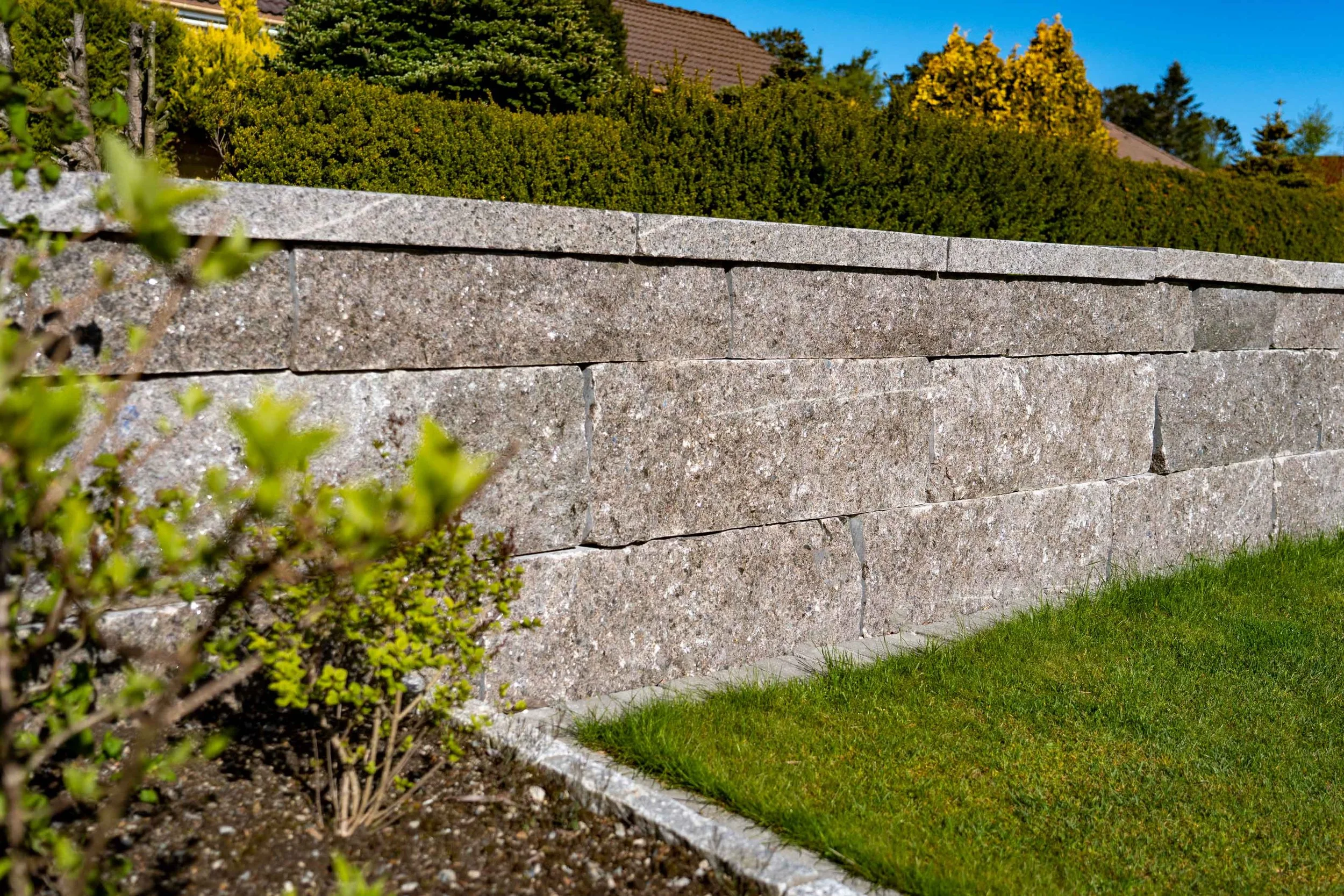 Murblokker i standard utførelse er med saget topp og bunn, hvor topp er flammet for bedre friksjon mot steinen over. Fronten er råhogd. Blokkene leveres i fallende lengder mellom 80–120cm. Opprinnelse er Kina.